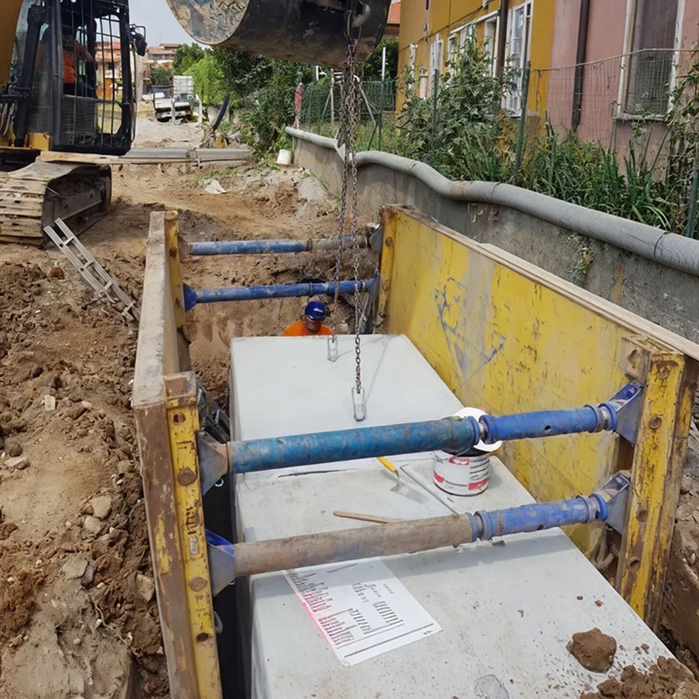 I manufatti sono stati prodotti dalla Prefabbricati LP S.r.L. e installati presso il cantiere di Bellusco in provincia di Monza Brianza dalla ditta MV Costruzioni, in vicolo Muggiasca per la realizzazione della nuova condotta fognaria.