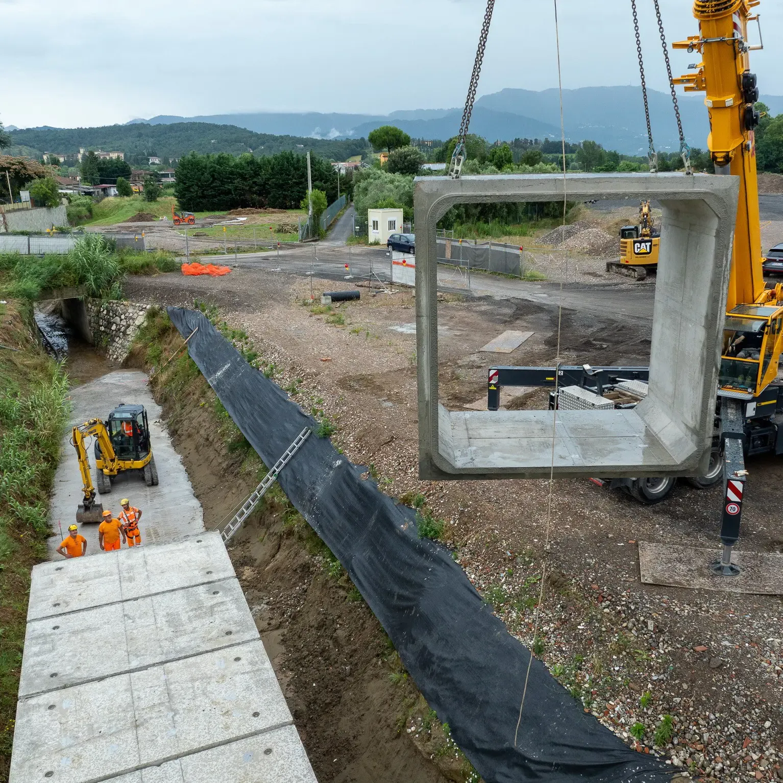 Presso il cantiere del nuovo ponte sul fiume Serchio, nel comune di Lucca, è stato realizzato un nuovo tombamento idraulico del canale Montebonelli, mediante l'impiego di scatolari modulari forniti dalla ditta Prefabbricati LP.