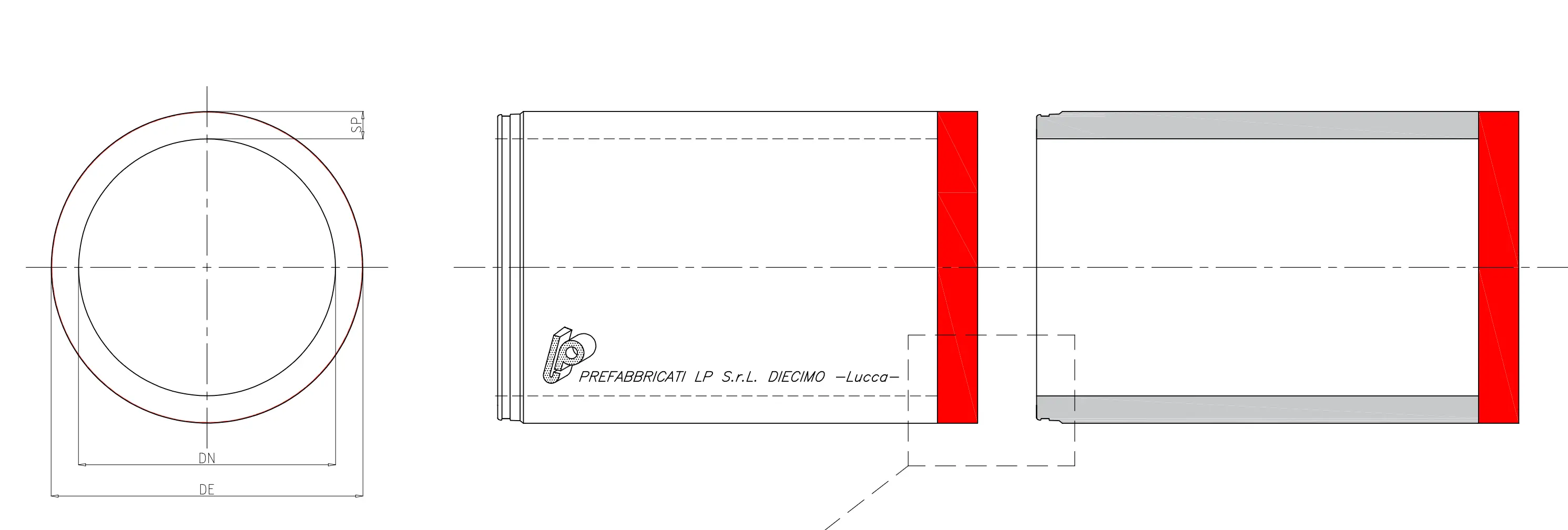 | DN mm | DE mm | SP mm | Lm mm | sp. mm | Lu mm | Lt mm | Peso Kg |
